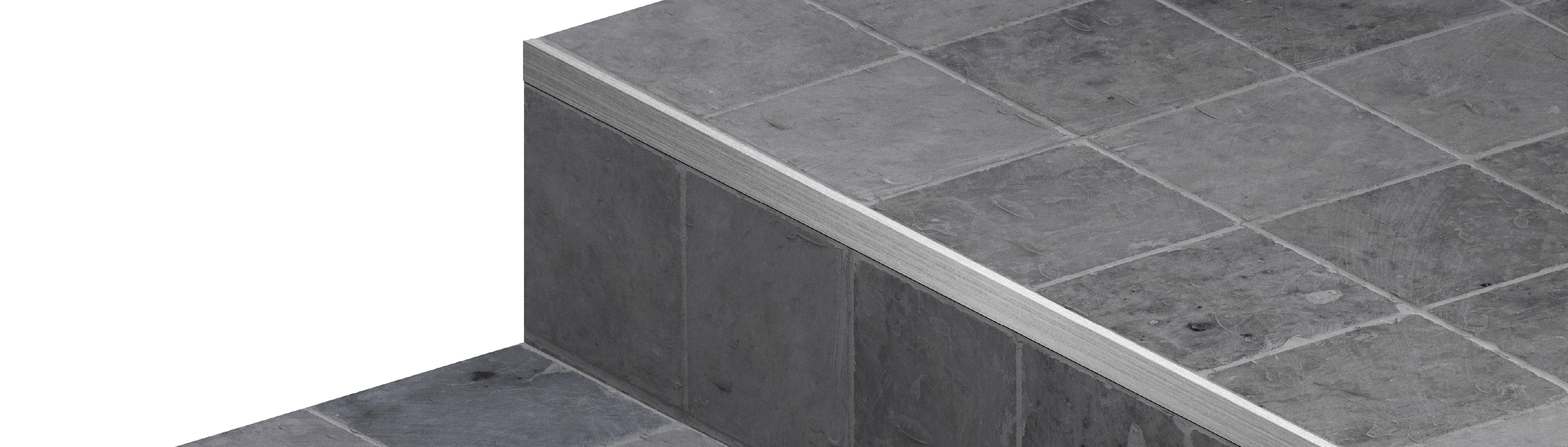 Previo G7は、ステンレス角棒を段鼻に埋込んで保護し、モルタル押えだけでなく、磁器タイル(12mm以下)においても、シャープでフラットな納まりを実現します。