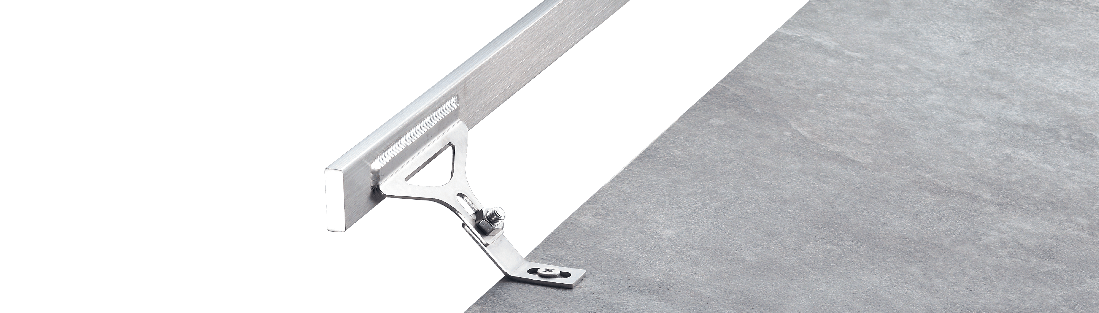 Previo G7 は、共用ブラケットのアーム角を45°とすることによって、必要モルタル厚を確保しつつ、あらゆる縦横比のフラットバー埋込みを可能にしました。